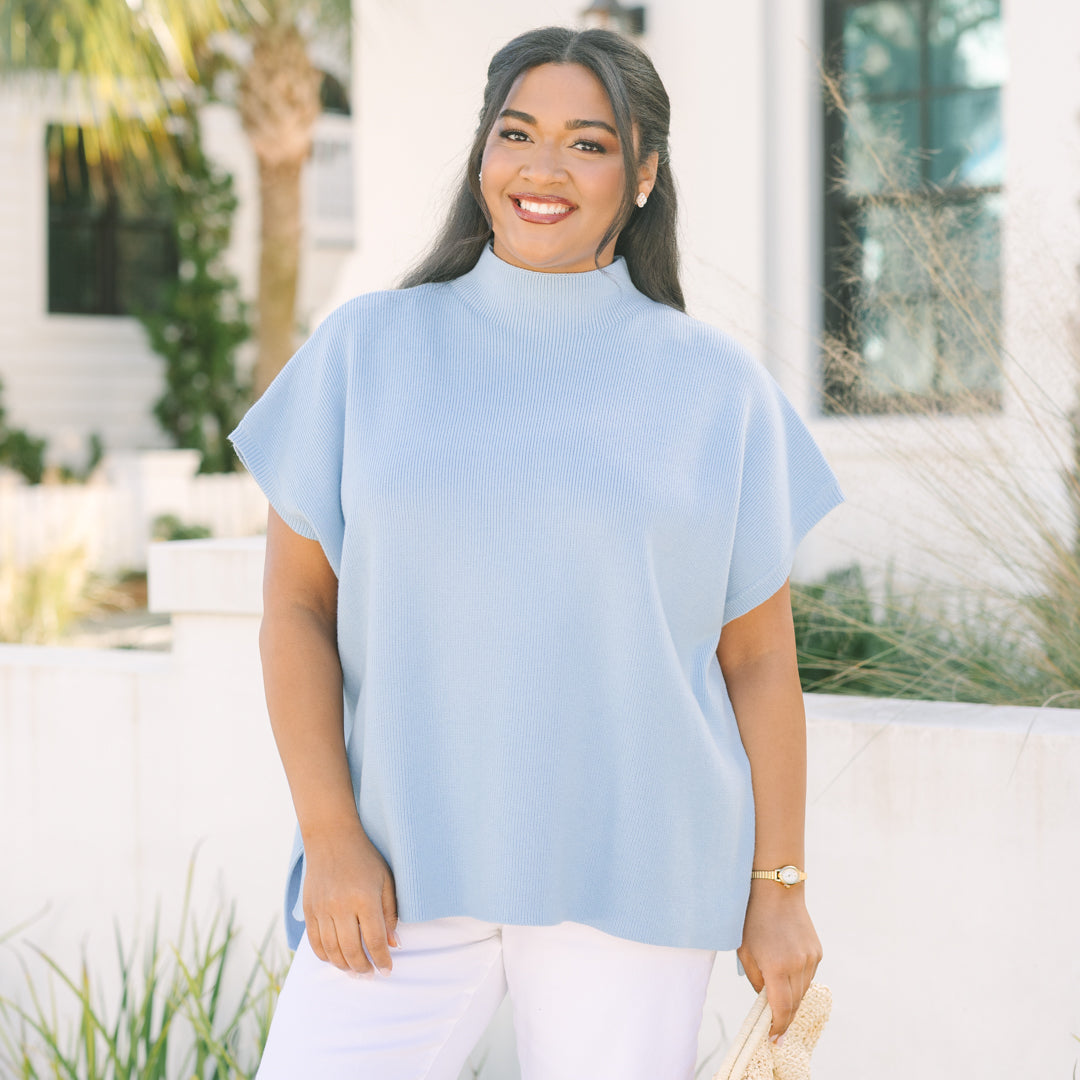 This gorgeous sweater top is perfect for those days when you want to do anything, and we mean anything! With a mock neckline and side slits, this blue top features a high low hemline for added style! So go ahead, do anything in this stylish and versatile sweater!