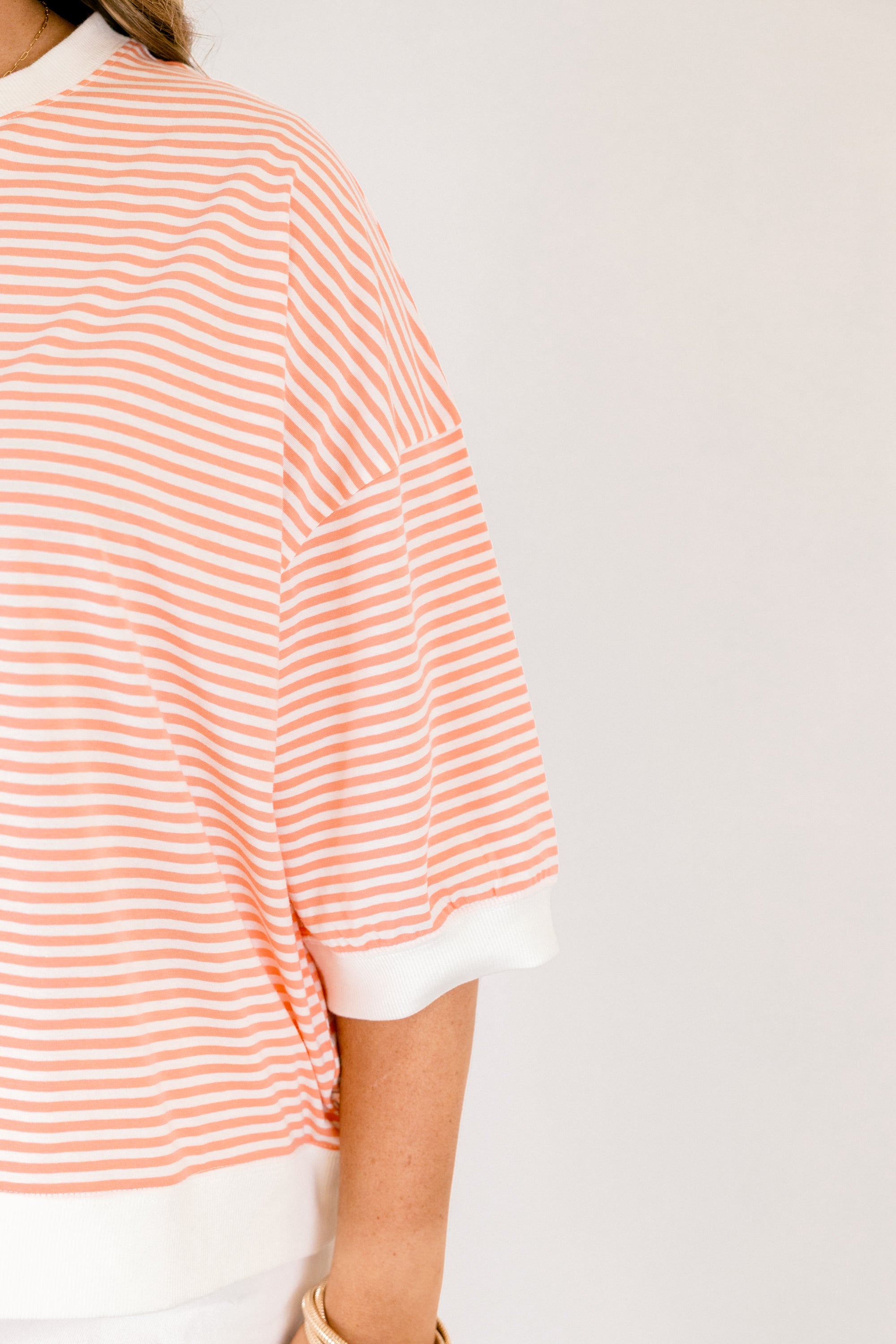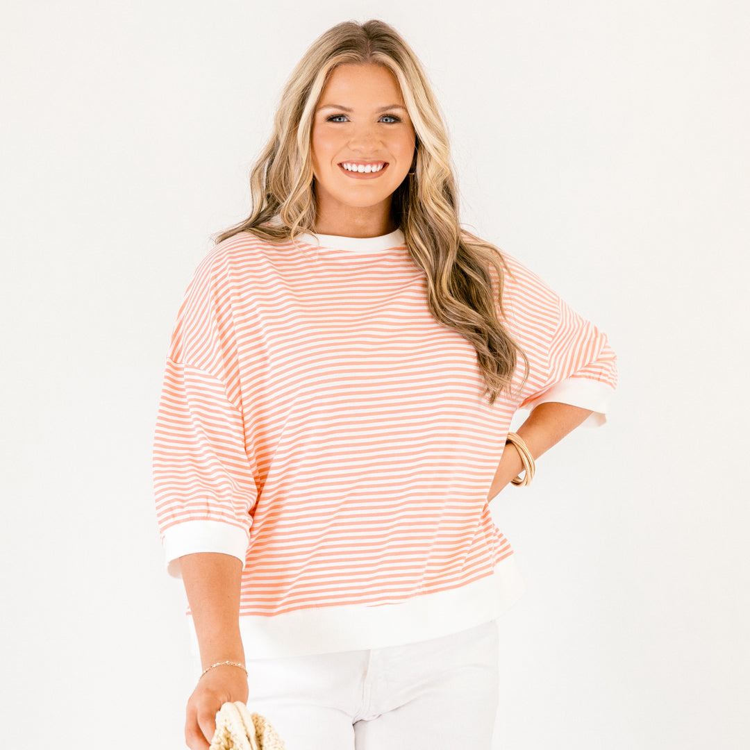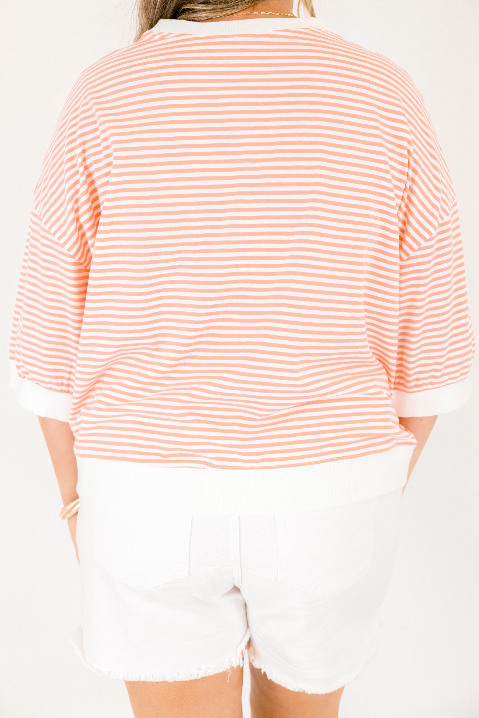 A refined staple with modern edge, this coral top showcases a striking striped bodice paired with contrasting banded trim! The structured ribbed fabric hugs your frame while the banded neckline, cuffs and hem create a polished, intentional look! Perfect for layering or wearing solo, it bridges the gap between casual and sophisticated! Versatile enough for the office, brunch, or weekend outings—a wardrobe essential that works harder than it looks!