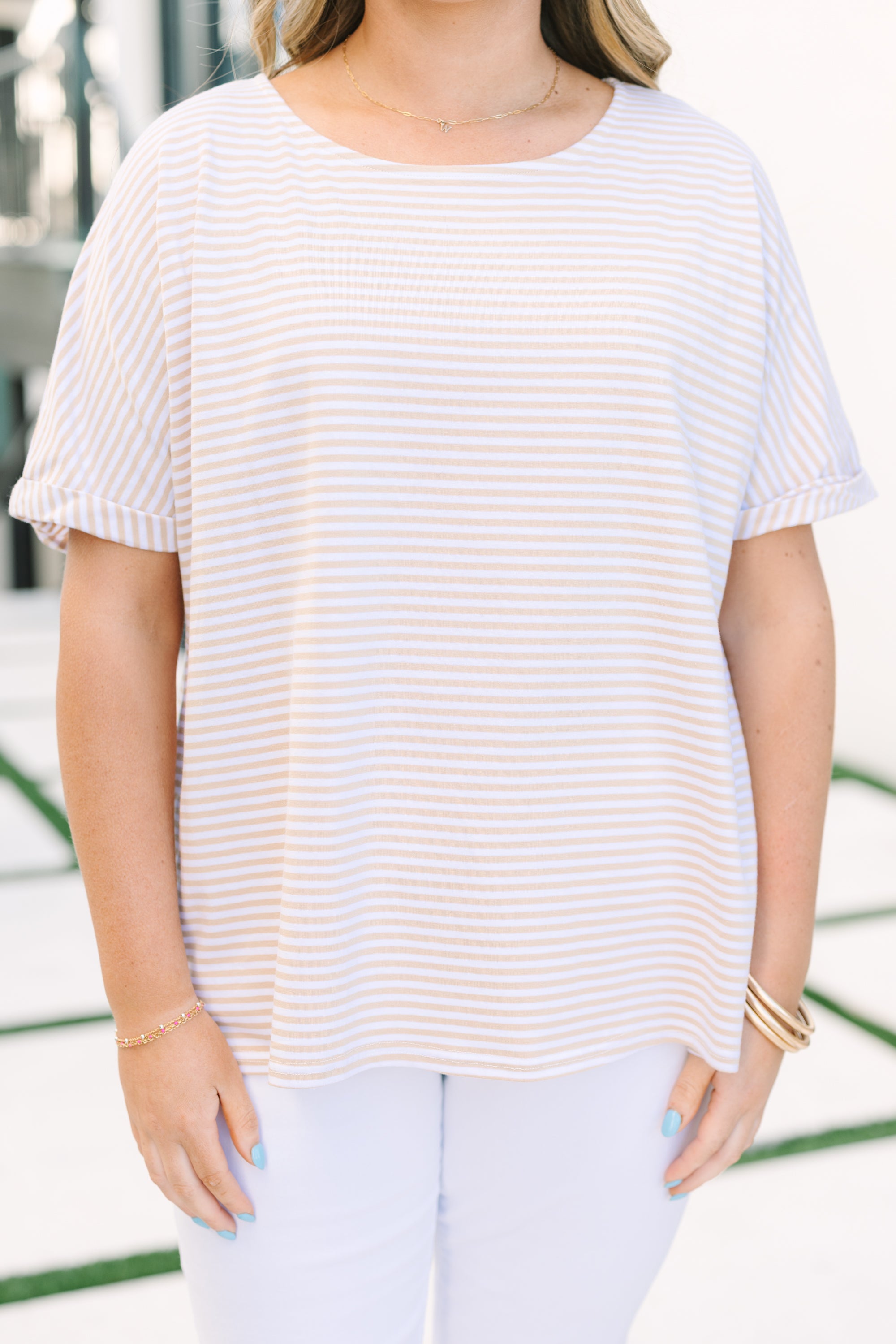 Stripes never go out of style—especially when they’re paired with charming cuffed sleeves that add a touch of vintage flair! This mocha short sleeve top brings effortless charm to your everyday rotation, whether you’re heading to brunch or running errands around town! The crisp striped pattern keeps things fresh and fun, while the cuffed sleeves give you that polished, put-together vibe without trying too hard! A wardrobe essential that proves timeless style is always in season!