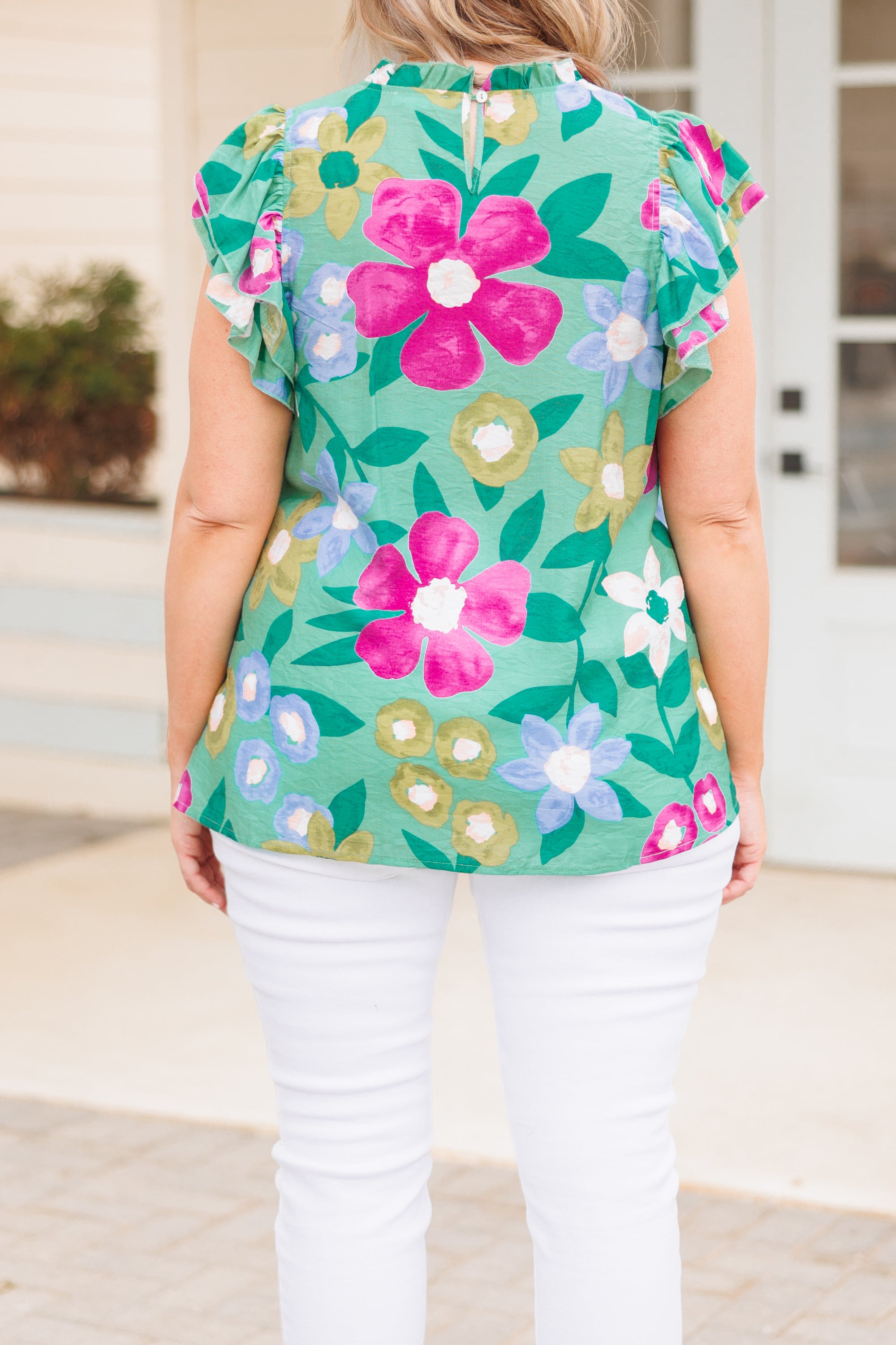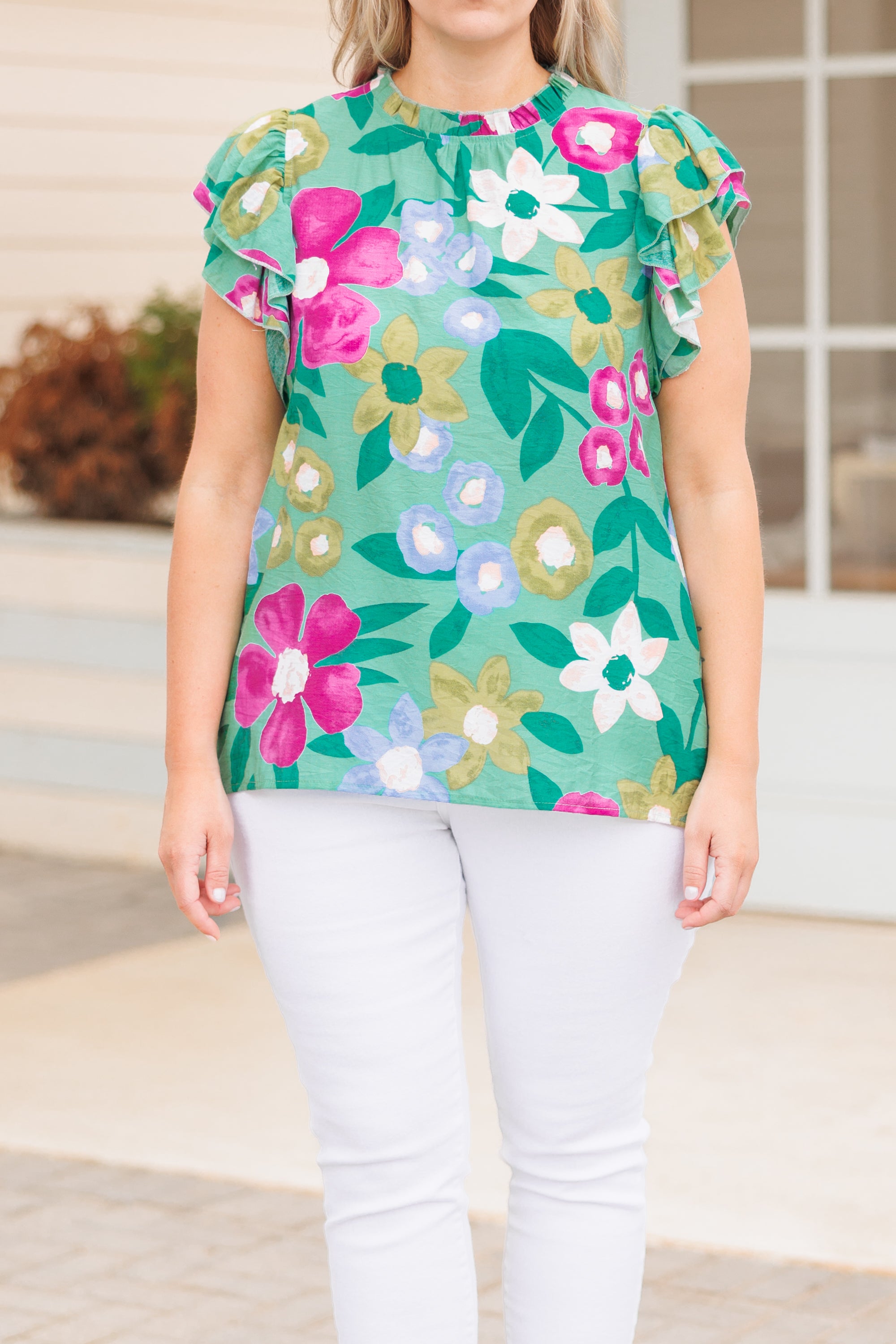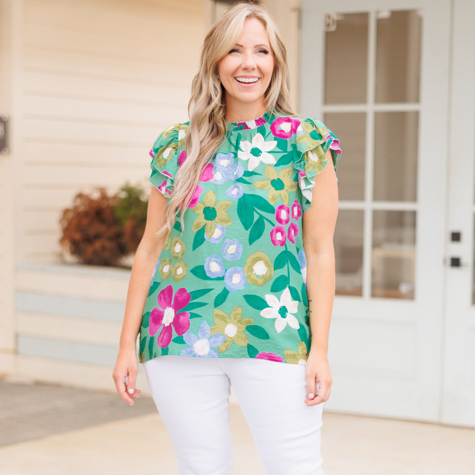 Stay cool and comfortable in this dazzling top! This beautiful design features a delicate floral pattern, a pretty mint hue, and flutter sleeves! Perfect for any summer occasion, this top will keep you looking and feeling your best!