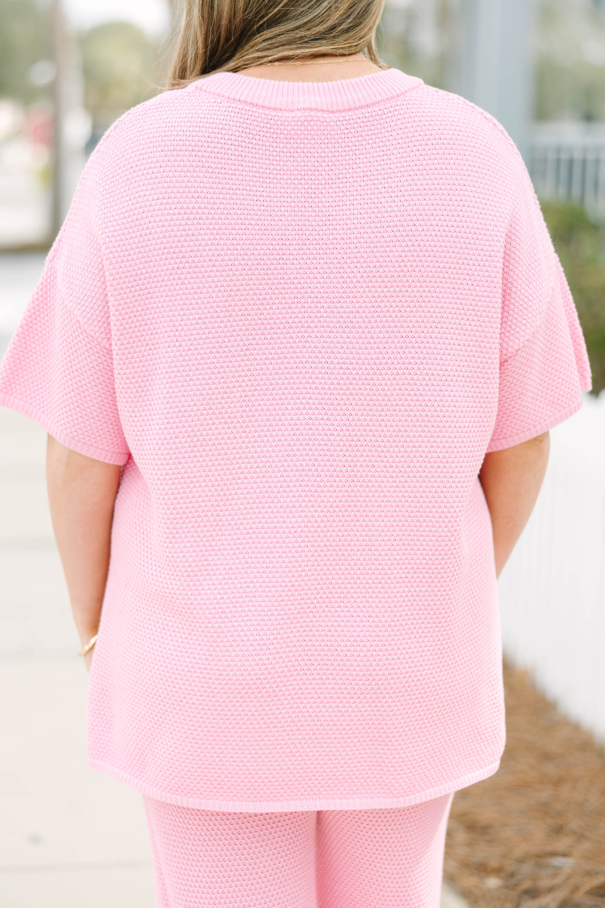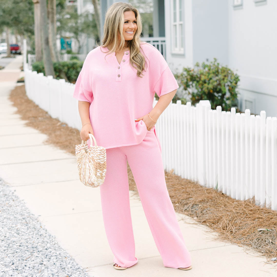 Effortless comfort meets casual style with this knit set featuring a soft short-sleeve top paired with coordinating bottoms! The elastic waistband ensures a relaxed, flattering fit that moves with you throughout your day! Perfect for lounging, running errands or layering with your favorite pieces! Available in a lovely pink hue that complements any wardrobe!